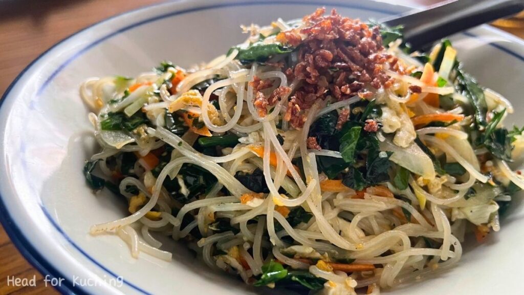 The standout dish is their fried bihun (rice vermicelli) made with Money Chye (马尼菜, also known as Mani Cai) — a leafy vegetable native to Southeast Asia that’s closely associated with the Kuching region.